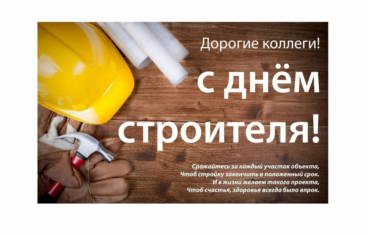 Пусть каждый штрих твоих строительных работ будет безупречным и по достоинству вознаграждается! В день строителя поздравляю и хочу пожелать здоровья. Желаю быть первым на стройке, желаю быть первым в рядах сильных и. Хочу пожелать, чтобы здоровье было крепким. В этом году день строителя выпал на 8 августа.
